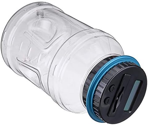 – Esta botella transparente tiene una pantalla LCD y una tapa que te ayuda a contar las monedas a medida que se deslizan por la ranura.