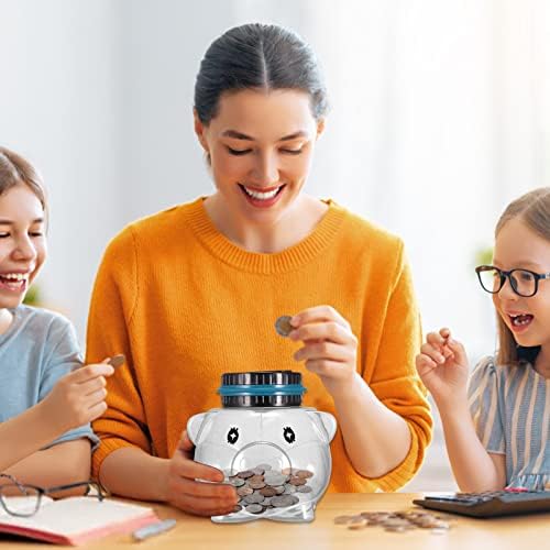Gran capacidad: gran capacidad de hasta 1,8 L y puede almacenar alrededor de 800-1000 monedas. Un día ahorrando una moneda, usted puede utilizarla por 2 años por lo menos. El diseño transparente le permitirá ver la cantidad de espacio que queda.